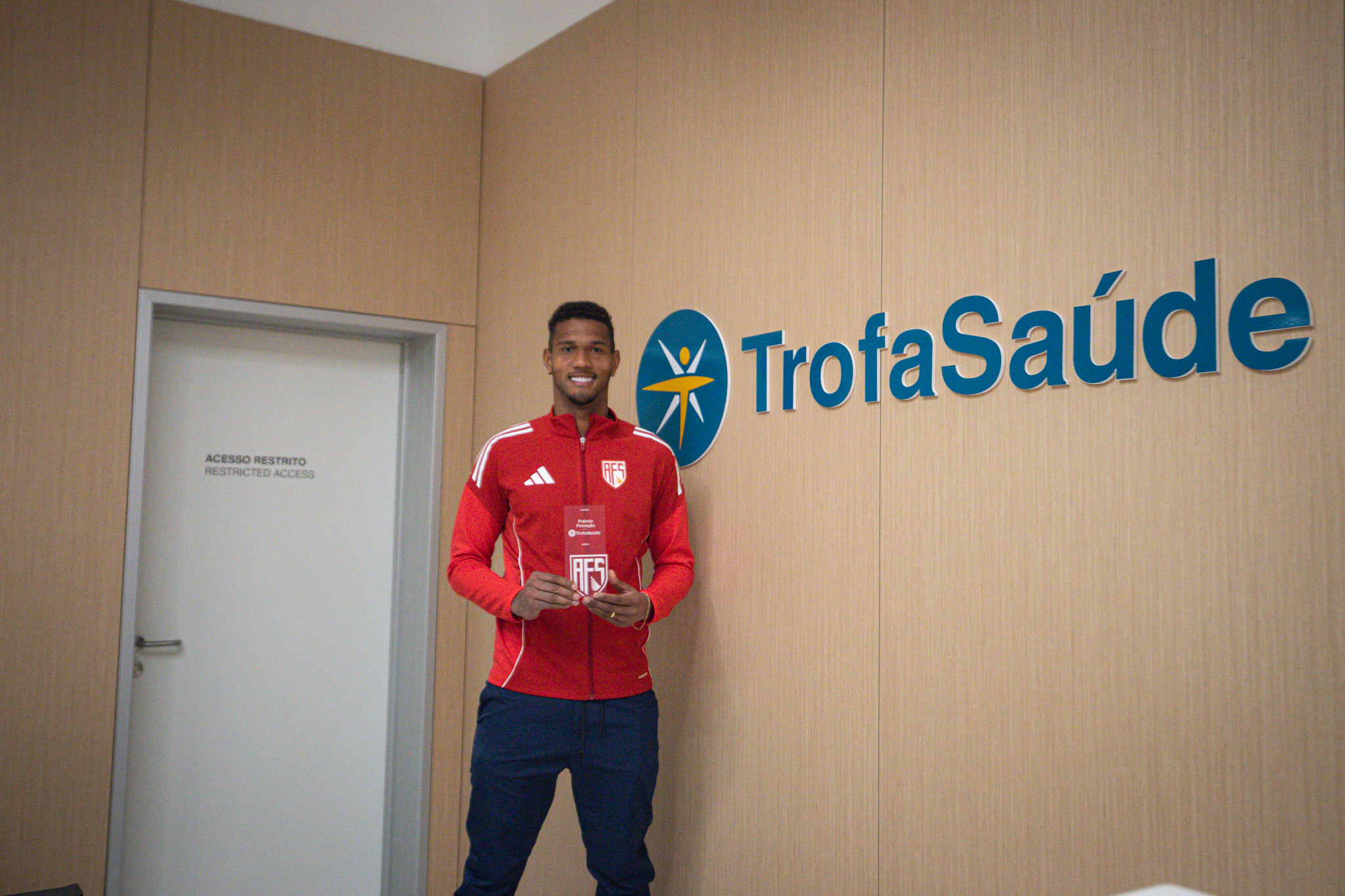 Adriel deslocou-se, uma vez mais, às instalações da Trofa Saúde, em Santo Tirso, para receber o prémio relativo ao último jogo, frente ao CD Tondela. Nesse jogo, para além de manter a baliza a zeros, destacam-se algumas boas intervenções do guarda-redes de 25 anos. Este é já o 4º prémio Trofa Saúde recebido em 6 jogos, o que revela, também, a maior consistência defensiva da equipa nos últimos tempos.